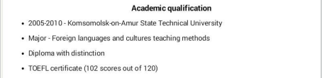 國(guó)籍: 俄羅斯 求職意向: 教師