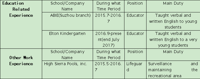 在美國生活4年,7月底結(jié)束合同,8月中旬到崗,求職上海幼兒園。 |
