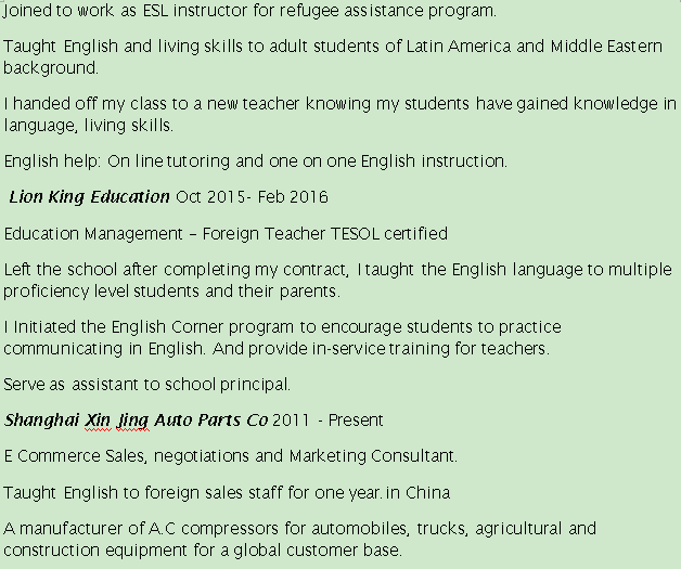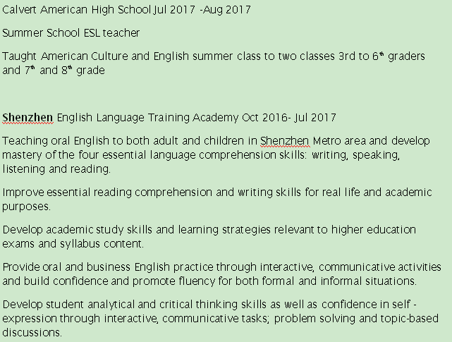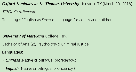 國籍: 美國 求職意向: 教師
