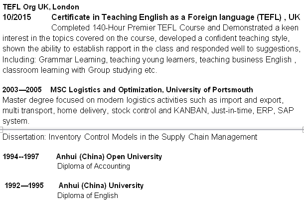 學歷: 本科 期望薪資: 6000-8000(Yuan/M)
