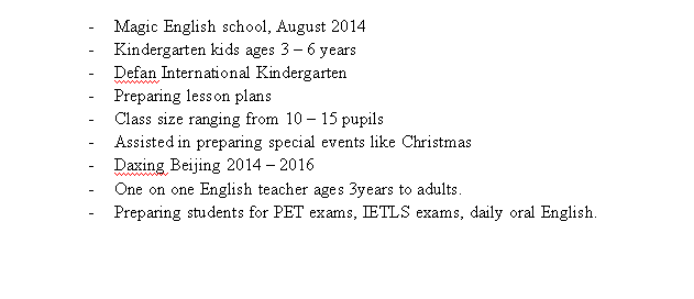 女,贊比亞,求職地不限, 有TESOL ,隨時到崗, 現(xiàn)居北京 |