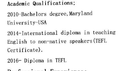 國籍: 其他 求職意向: 教師
