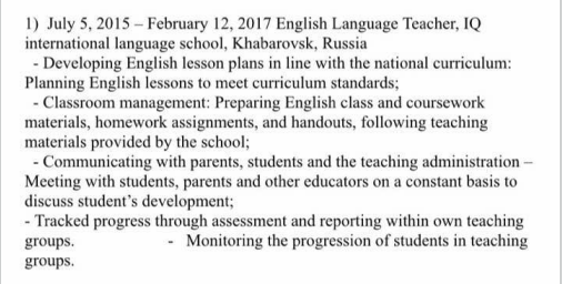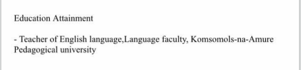 國(guó)籍: 俄羅斯 求職意向: 教師