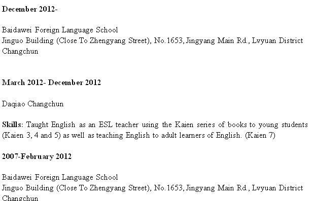 國(guó)籍: 肯尼亞 求職意向: 教師