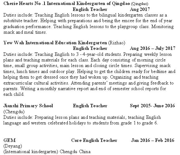國(guó)籍: 美國(guó) 求職意向: 教師
