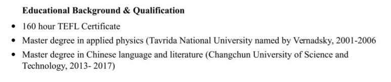 烏克蘭女外教,現(xiàn)在本國,碩士學(xué)位有160小時(shí)tefl證書,有教學(xué)經(jīng)驗(yàn),需要學(xué)校提供工簽;首選上海的職位。