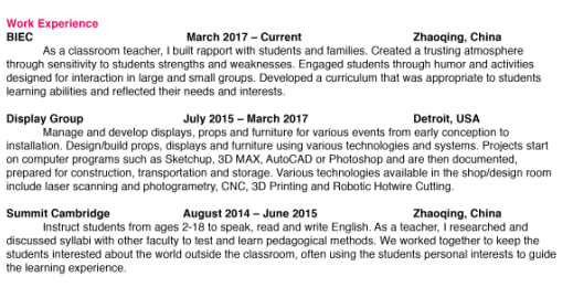 國籍: 其他 求職意向: 教師