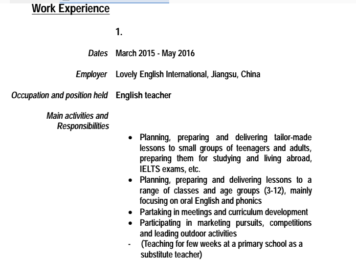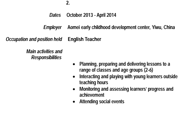 國籍: 英國 求職意向: 教師