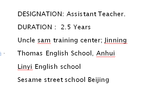 國籍: 其他 求職意向: 教師
