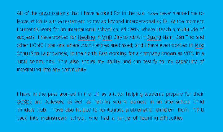 面試詳情:『全國均可』的用人單位可約該外教面試,目前還沒有用人單位約該外教面試。