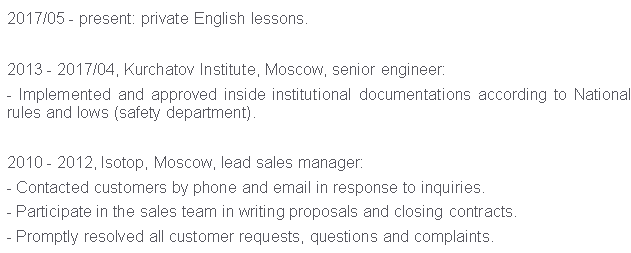 國籍: 其他 求職意向: 教師