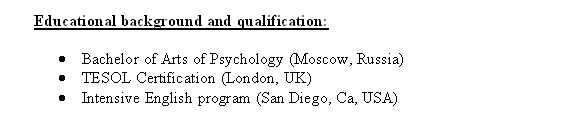 國(guó)籍: 俄羅斯 求職意向: 教師