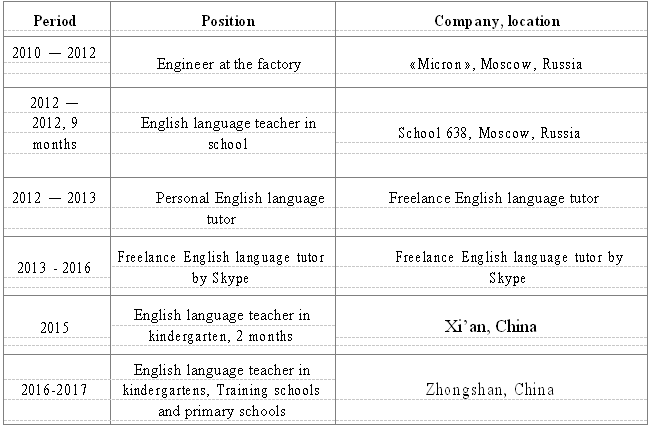 國籍: 其他 求職意向: 教師