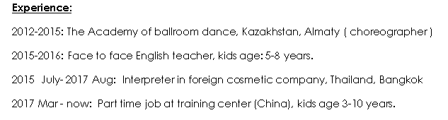 有tefl, 主修過音樂, 喜歡小孩子, 商務(wù)簽, 形象口音均很好 |