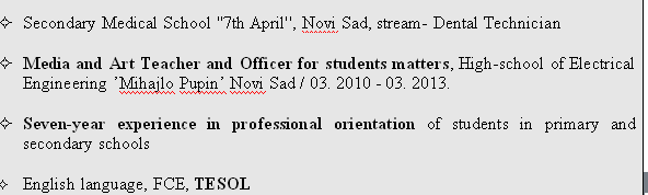 國籍: 塞爾維亞 求職意向: 教師