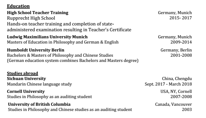 德國女求職教學(xué)。,大家好, 我來自德國, 我是一個(gè)高中教師, 在德國,各個(gè)年級(jí)都教授過。小學(xué), 和高中都有經(jīng)驗(yàn)。我到中國后, 喜歡中國的文化, 漢語, 想找一份長期工作。我很喜歡和孩子在一起, 喜歡和他們一起探索世界。一起長大, 我喜歡一個(gè)很開放的學(xué)校。可以一起和孩子長大。