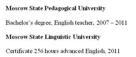國籍: 俄羅斯 求職意向: 教師
