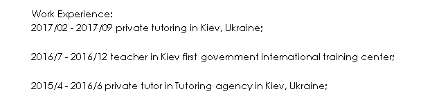 國籍: 俄羅斯 求職意向: 教師