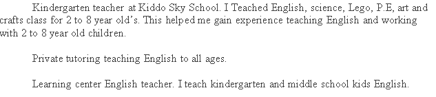 國籍: 其他 求職意向: 教師