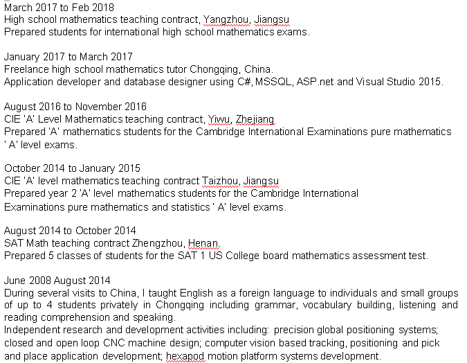 英國, 理科碩士。在揚州, 家屬簽證,  有工簽資料, 求職數(shù)學, 數(shù)學教學有5年, 只想教數(shù)學, 1月可以到崗。