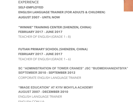 國籍: 英國       求職意向: 教師