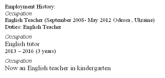 國(guó)籍: 烏克蘭 求職意向: 教師