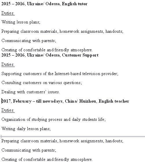 國(guó)籍: 俄羅斯 求職意向: 教師