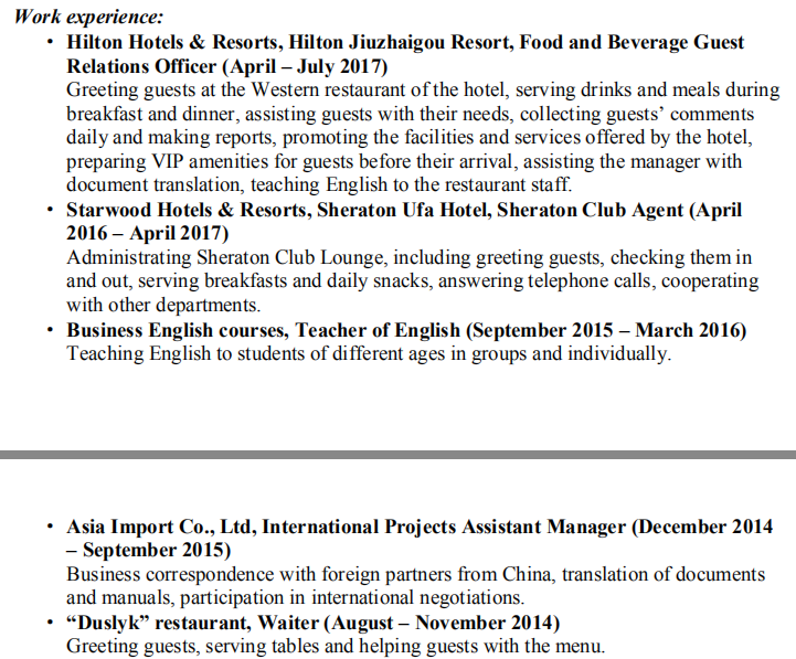國籍: 俄羅斯 求職意向: 教師