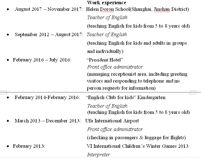 國籍: 俄羅斯 求職意向: 教師