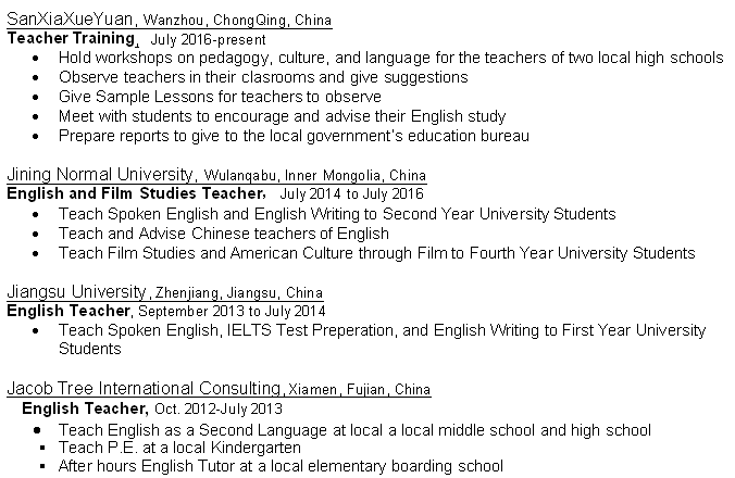 國(guó)籍: 美國(guó) 求職意向: 教師