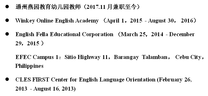 面試詳情:『北京或附近』的用人單位可約該外教面試,目前還沒有用人單位約該外教面試。