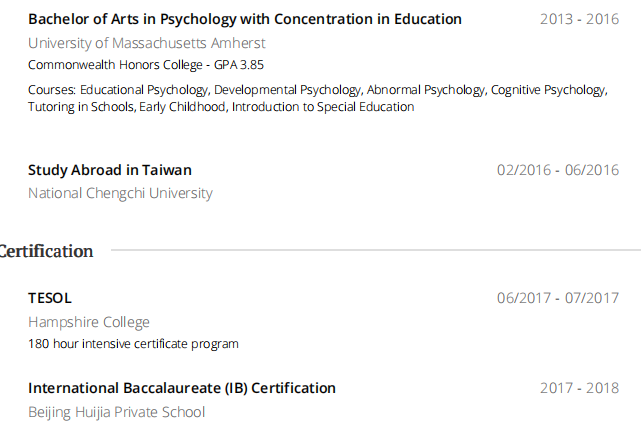 國(guó)籍: 加拿大 求職意向: 教師