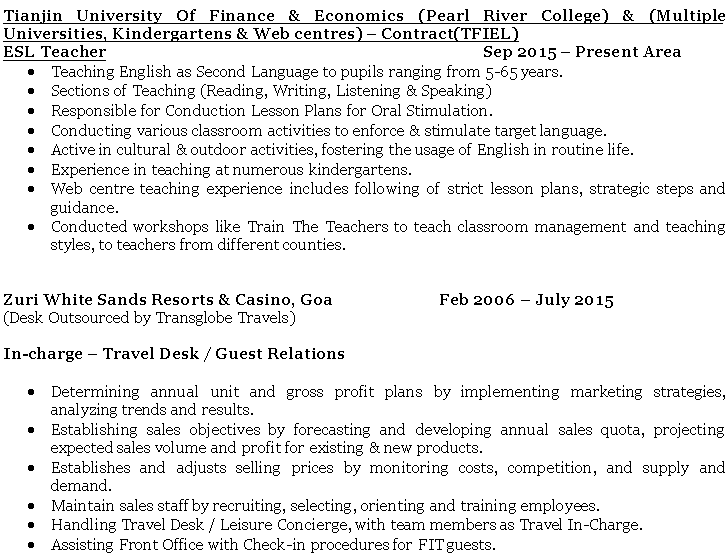 國籍: 法國 求職意向: 教師