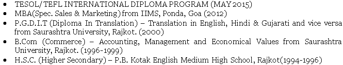 國籍: 巴基斯坦 求職意向: 教師