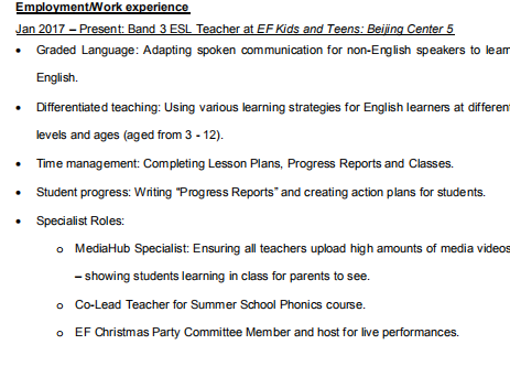 外教的工作經(jīng)歷