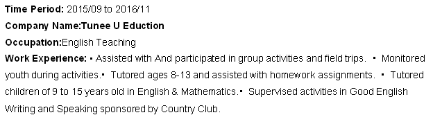 國籍: 其他 求職意向: 教師
