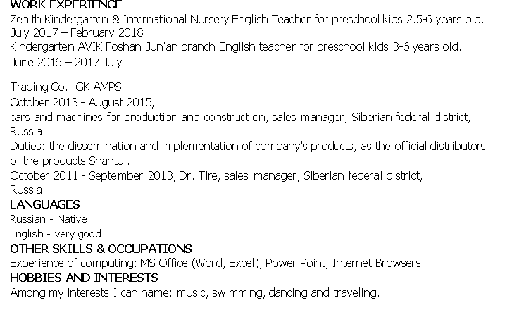 國(guó)籍: 俄羅斯 求職意向: 教師