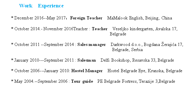 塞爾維亞,在嘉興, 學(xué)生簽到8月, 求職寧波,海南等海邊溫暖城市, 很活潑與孩子打鬧城一團(tuán),薪資要求14K ,可以協(xié)商。 |