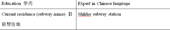 面試詳情:『北京十里河10號(hào)地鐵站附近』的用人單位可約該外教面試,目前還沒有用人單位約該外教面試。