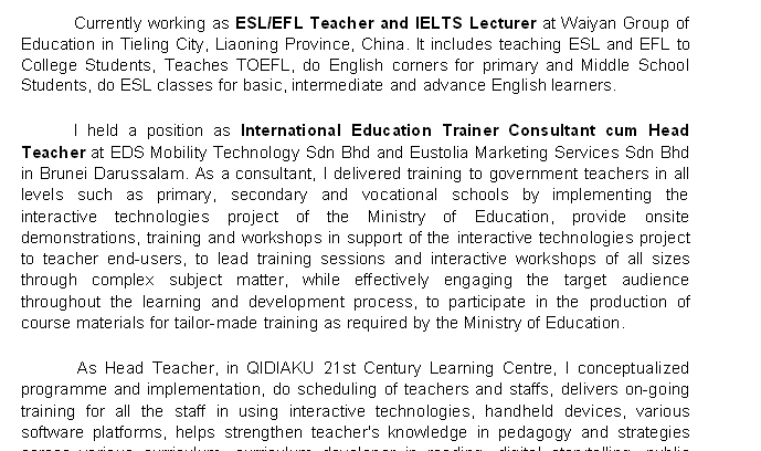 菲律賓 在遼寧大學(xué), 本科在菲律賓, 英語文學(xué)專業(yè), 經(jīng)驗很豐富, 大學(xué)小學(xué)培訓(xùn)都有經(jīng)驗, 都可以 教, 有很多優(yōu)秀的視頻,工簽到11月, 發(fā)音很好 是國際教育培訓(xùn)顧問, 求職地不限制。 要求 工簽轉(zhuǎn)聘,住宿 |