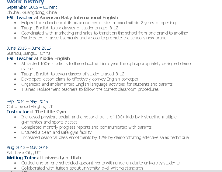國(guó)籍: 美國(guó) 求職意向: 教師
