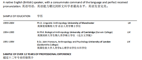 國(guó)籍: 美國(guó) 求職意向: 教師