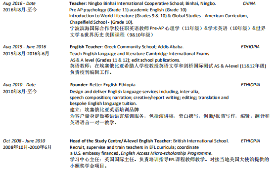 國(guó)籍: 津巴布韋 求職意向: 教師