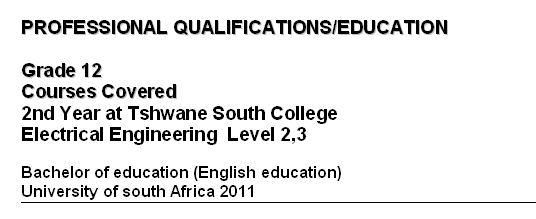 國籍: 南非 求職意向: 教師