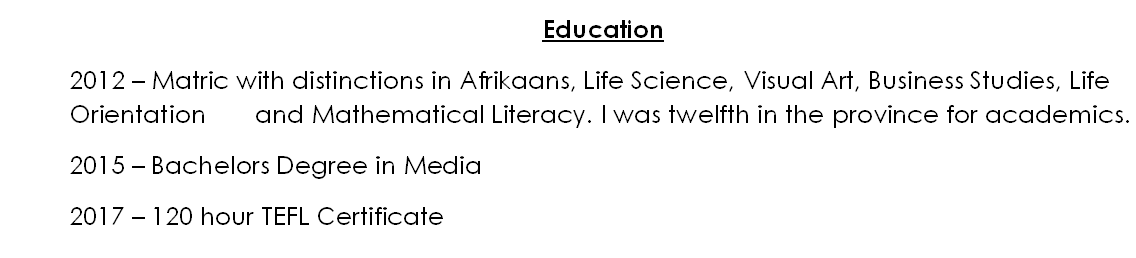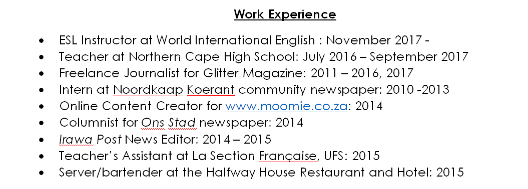 國(guó)籍: 南非 求職意向: 教師