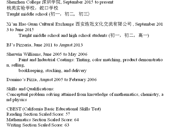 美國, 在深圳, 有公立私立學(xué)校經(jīng)驗(yàn), 工簽在7月轉(zhuǎn)聘, 求職南方公立私立學(xué)校。 |