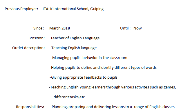 國籍: 其他 求職意向: 教師