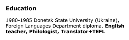 國籍: 烏克蘭 求職意向: 教師