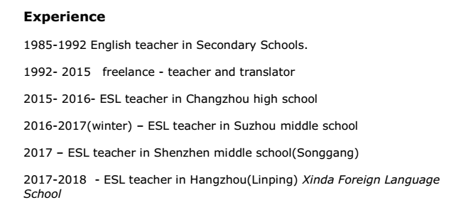 國籍: 俄羅斯 求職意向: 教師