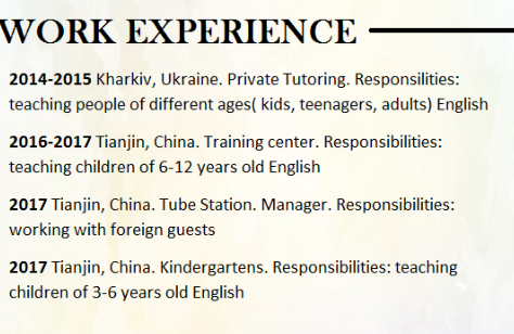 國籍: 俄羅斯       求職意向: 教師